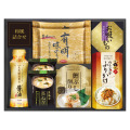 | セット内容 | 白子有明味のり(8切8枚)・マルコメ京懐石長ねぎのおみそ汁(15.7g)×各2、鰹節削り(2g×2袋)・永谷園お吸いもの松茸風味(2.3g×2袋)・のり玉子ふりかけ(4.5g×2袋)・伊賀越天然醸造しょうゆ(200ml)×各1 |