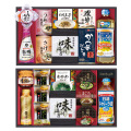 | セット内容 | セット内容/たまごスープ(5.4g)×3、有明海産味付け海苔(8切6枚×2袋)×2、ニッスイ焼鮭ほぐし50g・わかめスープ(5.3g×2袋)・永谷園お茶漬けのり(4.7g×2袋)・永谷園お吸いもの松茸風味(2.3g×2袋)・まぐろそぼろ佃煮(5g×2袋)・島の香しそのり佃煮80g・梅茶漬け(4.3g×2袋)・鮭茶漬け(4.7g×2袋)・のり玉子ふりかけ(4.5g×2袋)・鰹節削り(1.5g×2袋)・マルトモかつおだしの素(4g×6袋)・伊賀越天然醸造しょうゆ(200ml)・キッコーマン牡蠣だししょうゆ(200ml)・日清キャノーラ油(400g)・日清ヘルシーライト(600g)×各1 |
